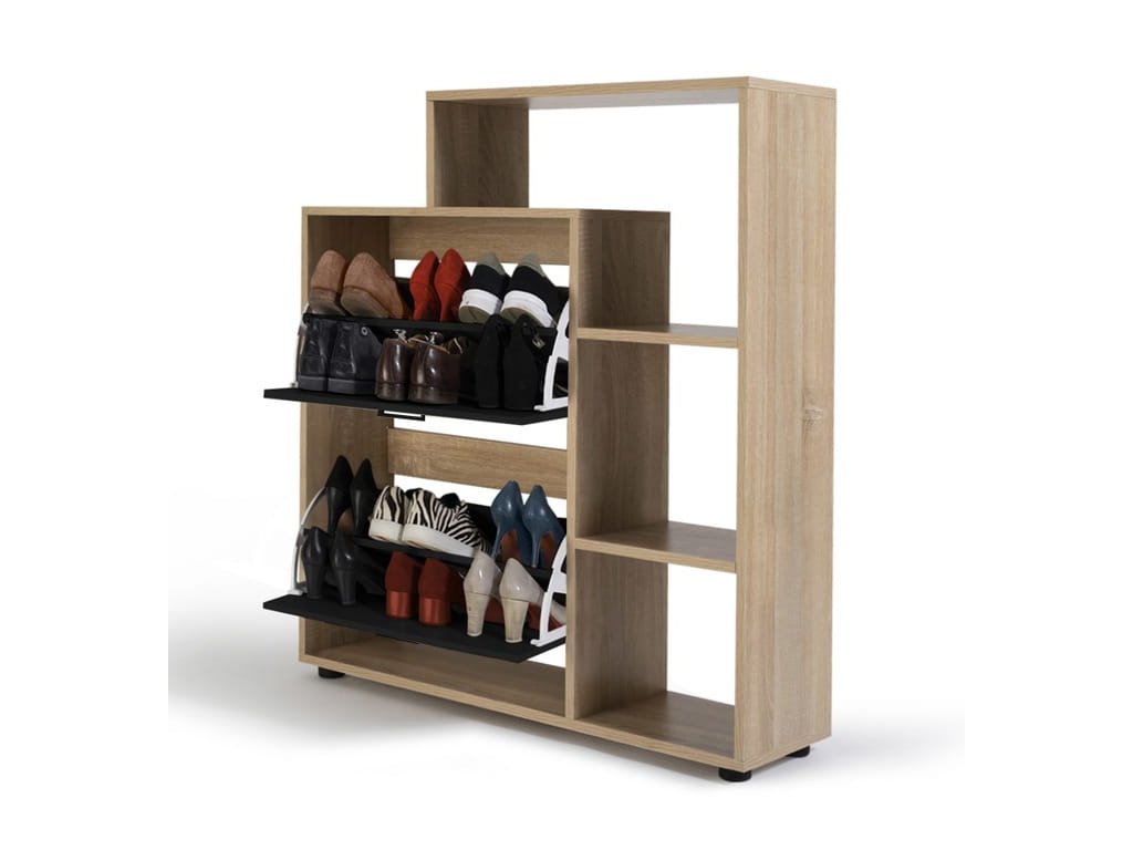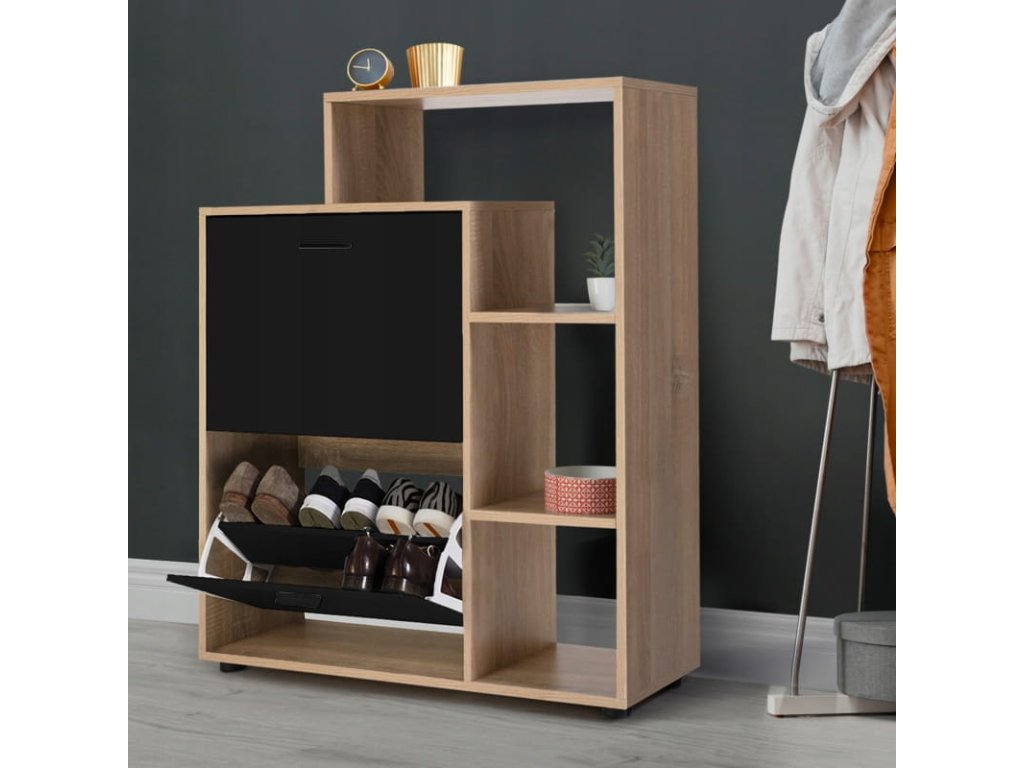 Botník výklopný s policí v provedení černá / dub sonoma je praktickým a elegantním řešením pro všechny, kdo chtějí mít své boty vždy pěkně uspořádané a po ruce.