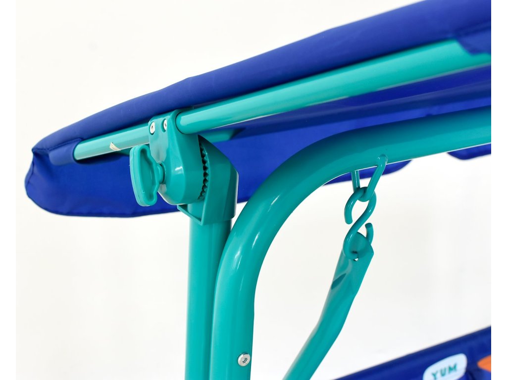 ✔ Houpačka s ochranným stříškou – chrání dítě před sluncem a zajišťuje pohodlnou hru venku