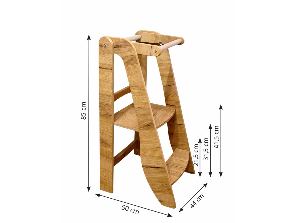 Dřevěná skládací učící věž KIDSWOOD Fold Step Montessori - barva dřeva