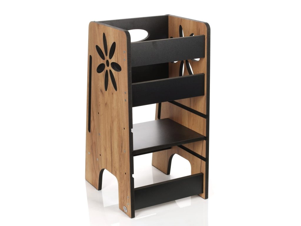 Dřevěná učící věž Montessori KIDSWOOD Flower KH-355 80cm - barva dřeva/černá
