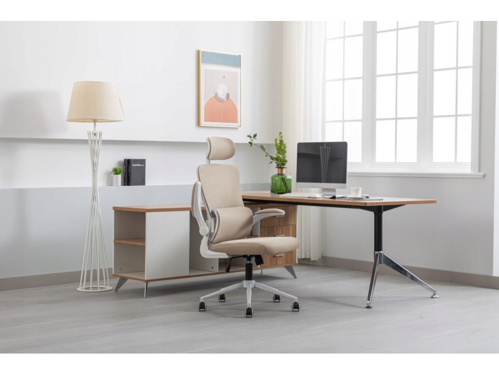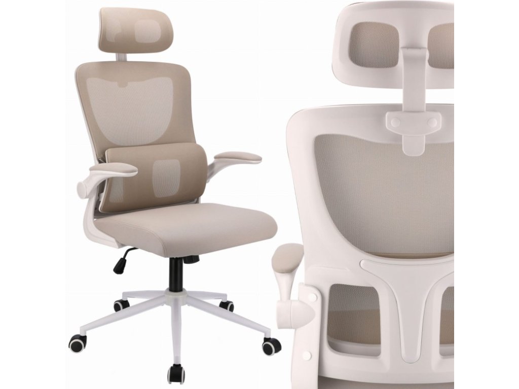 🪑 Ergonomická kancelářská židle ZEO – béžová / bílá
