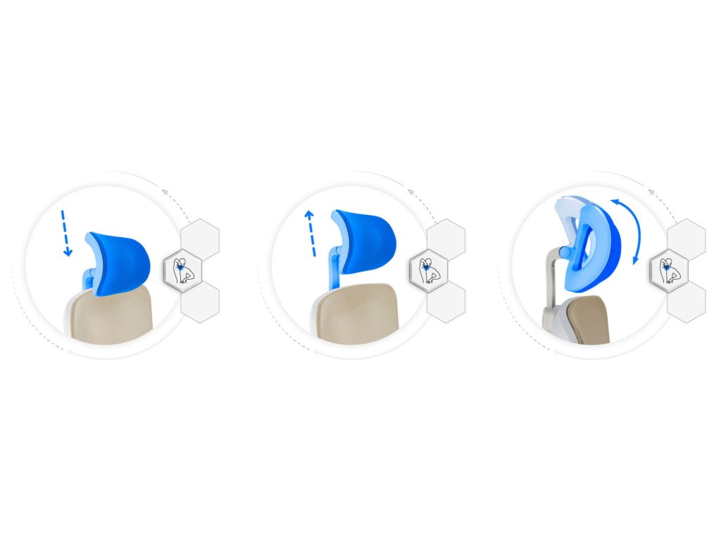 Výškově i úhlově nastavitelný hlavový opěrák poskytuje ideální oporu pro hlavu a krk, čímž snižuje napětí v krční oblasti.