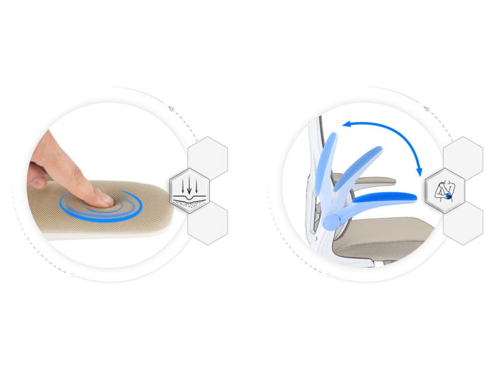 Sedák i opěradlo jsou vyrobeny z mikrosíťoviny, která zajišťuje optimální cirkulaci vzduchu a komfort i během dlouhých pracovních hodin.
