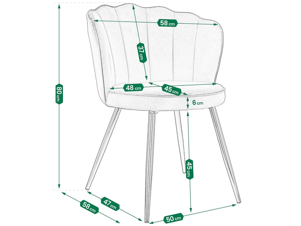 Jídelní židle FIORE je elegantní a stylová čalouněná židle z veluru, která zaujme svým neotřelým tvarem a luxusními detaily. Zlaté kovové nohy dodávají židli exkluzivní vzhled a dělají z ní výrazný prvek každého interiéru. Skvěle se hodí do jídelny, obývacího pokoje, pracovny i reprezentativních komerčních prostor.