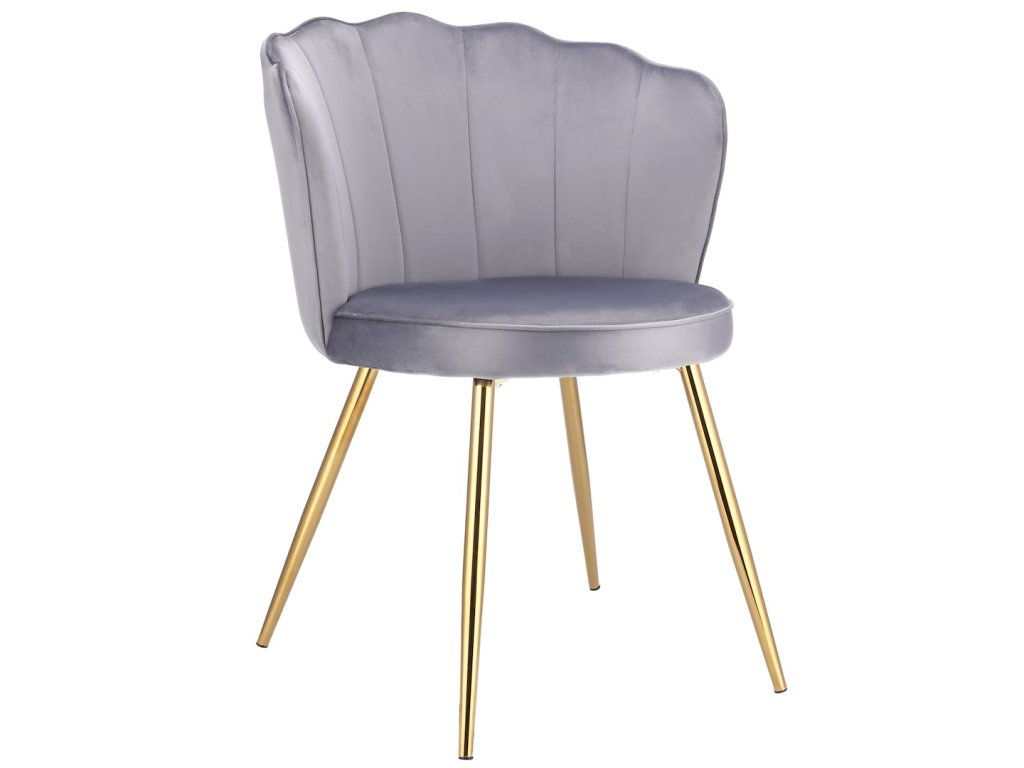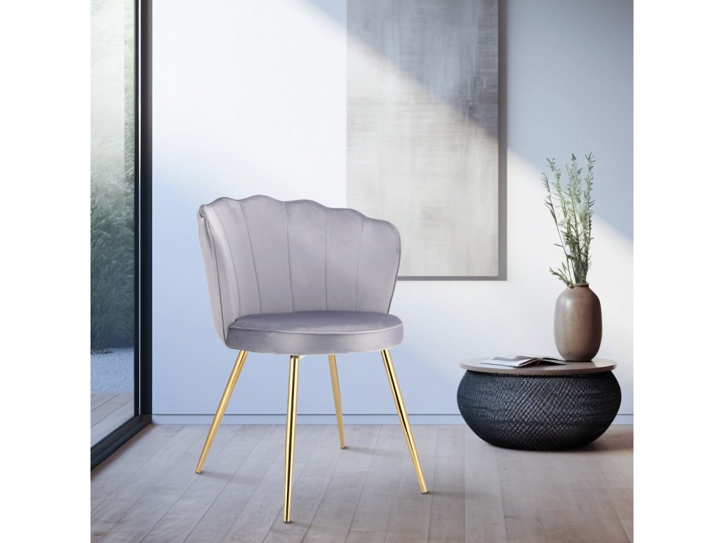Jídelní židle Stylo FIORE – velurový sedák, zlaté nohy - šedá