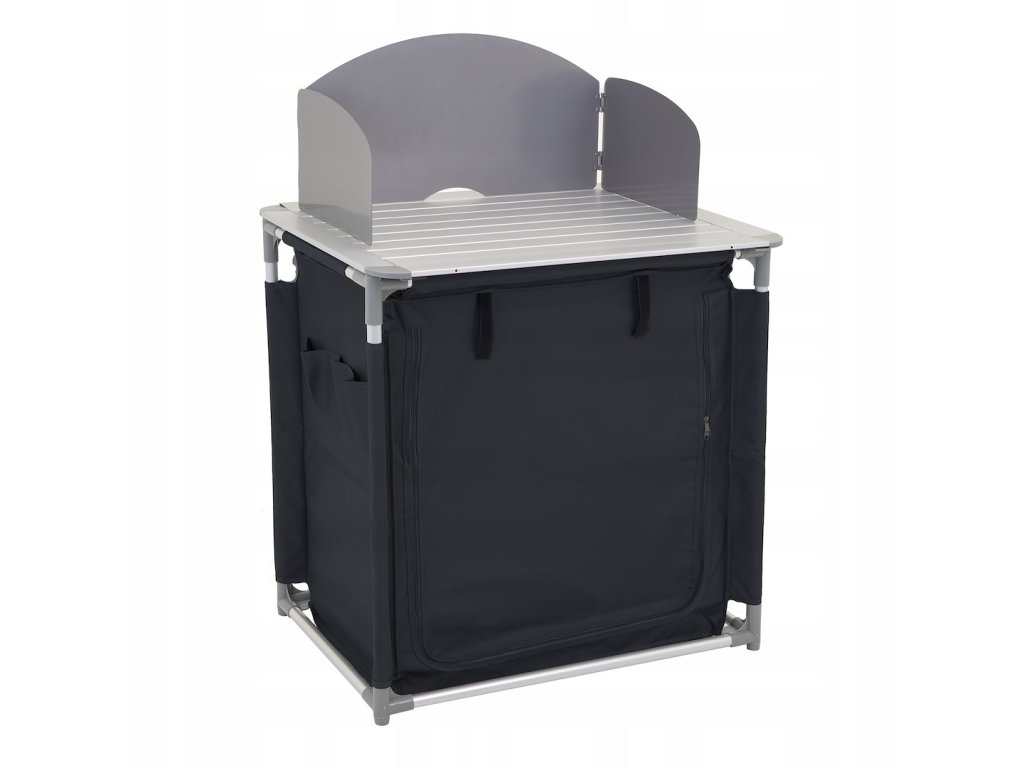 Praktický kempingový kuchyňský stůl se skříňkou je ideálním řešením pro kempování, cestování, pikniky i pobyt v karavanu. Nabízí dostatek úložného prostoru a pracovní plochu, díky čemuž výrazně zvyšuje komfort při přípravě jídel v přírodě.