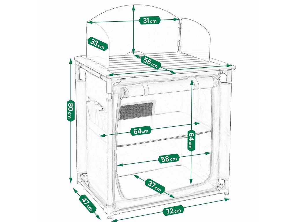 🌿 Pokud hledáte kempingový kuchyňský stůl, skládací turistickou skříňku, kempingový nábytek s úložným prostorem nebo praktický stůl na cesty, je tento model skvělou volbou pro pohodlné vaření a organizaci během pobytu v přírodě.