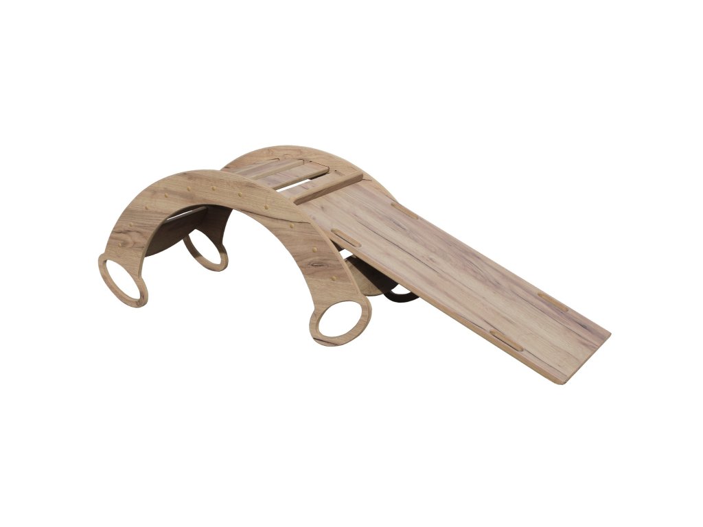Houpačka je inspirovaná montessori principy a podporuje rozvoj rovnováhy, síly, motoriky i fantazie. Její přírodní dřevěný vzhled krásně zapadne do každého interiéru i dětského pokoje.