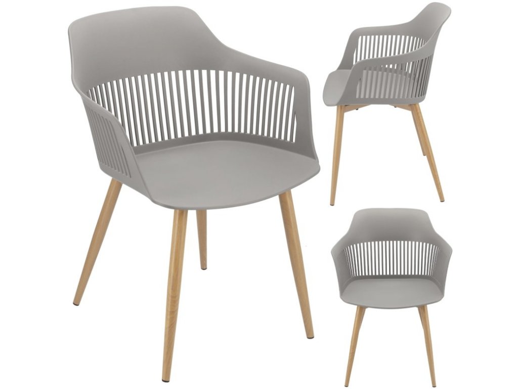 Plastová jídelní židle CORNIDO je kus nábytku s charakteristickým opěrákem, který byl navržen do moderních interiérů a zahrad. Židle vyniká nejen svým vzhledem, ale je také odolná, což zajišťuje dlouhodobé používání. Prolamované opěradlo a kovové nohy imitující dřevo dodávají eleganci. Židle je odolná vůči povětrnostním vlivům, lze ji tedy používat v interiéru i exteriéru.