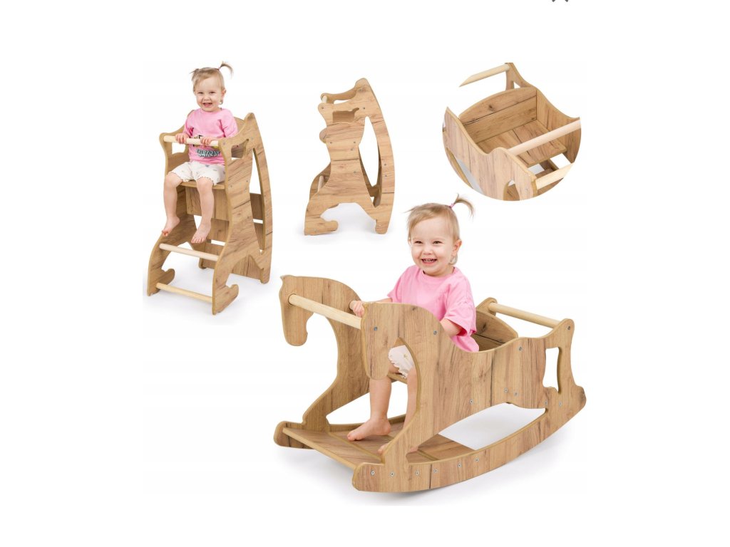 Dřevěný houpací koník a židlička 2v1 KIDSWOOD - bílá
