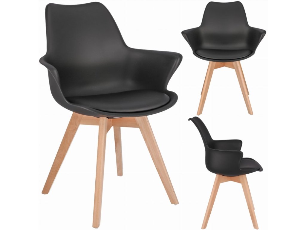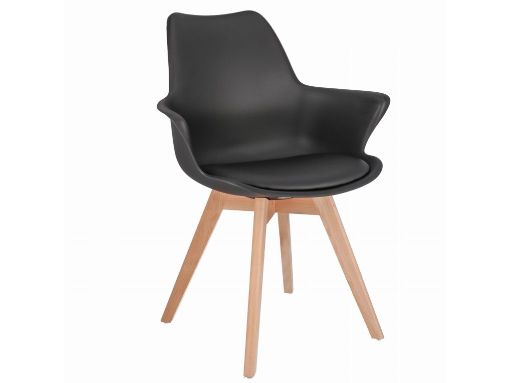 Skandinávská plastová jídelní židle, eko kůže ORLEAN - černá