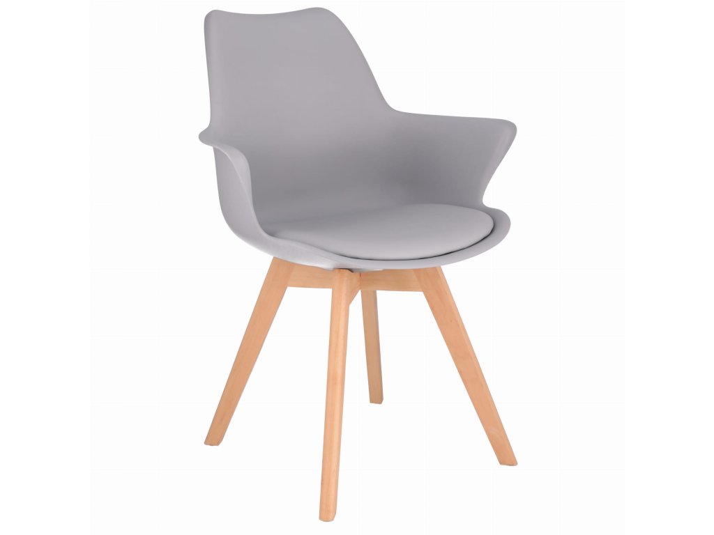 Skandinávská plastová jídelní židle, eko kůže ORLEAN - šedá