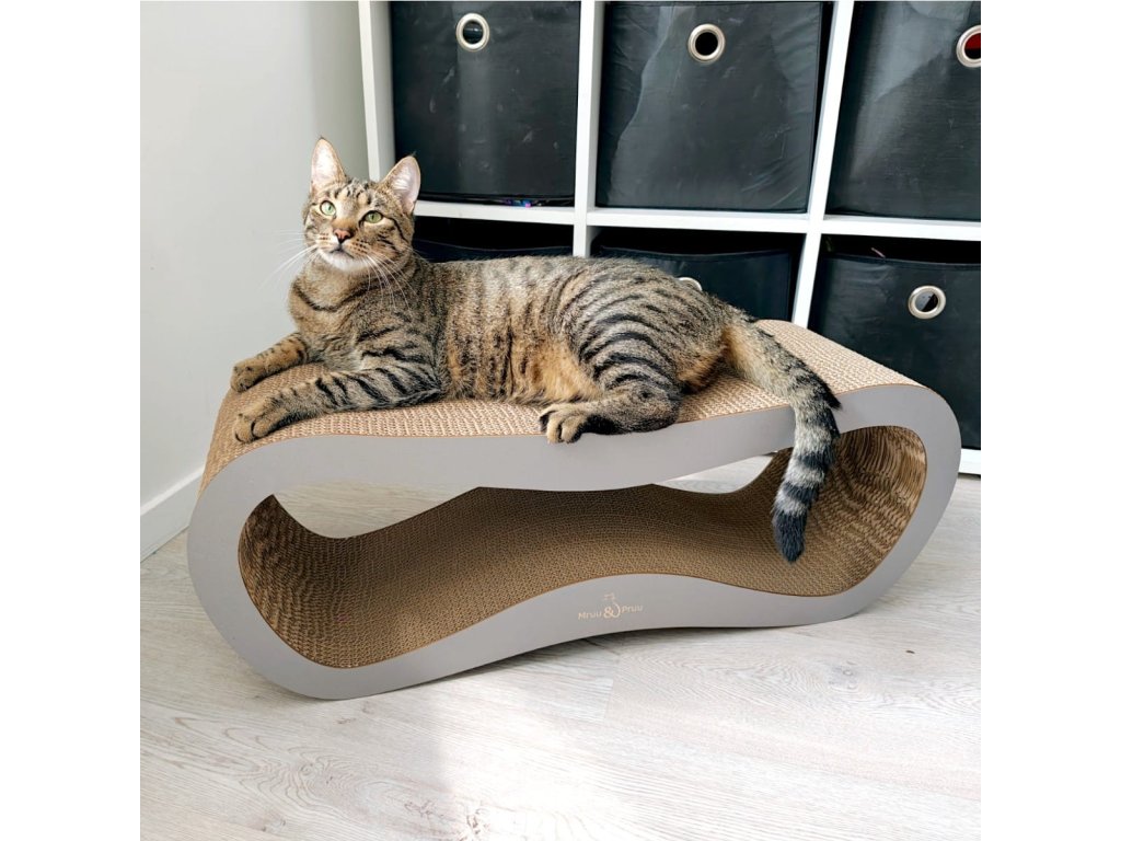 Škrabadlo pro kočky kartonové MruuPruu LEON 78x28x24 cm - šedá