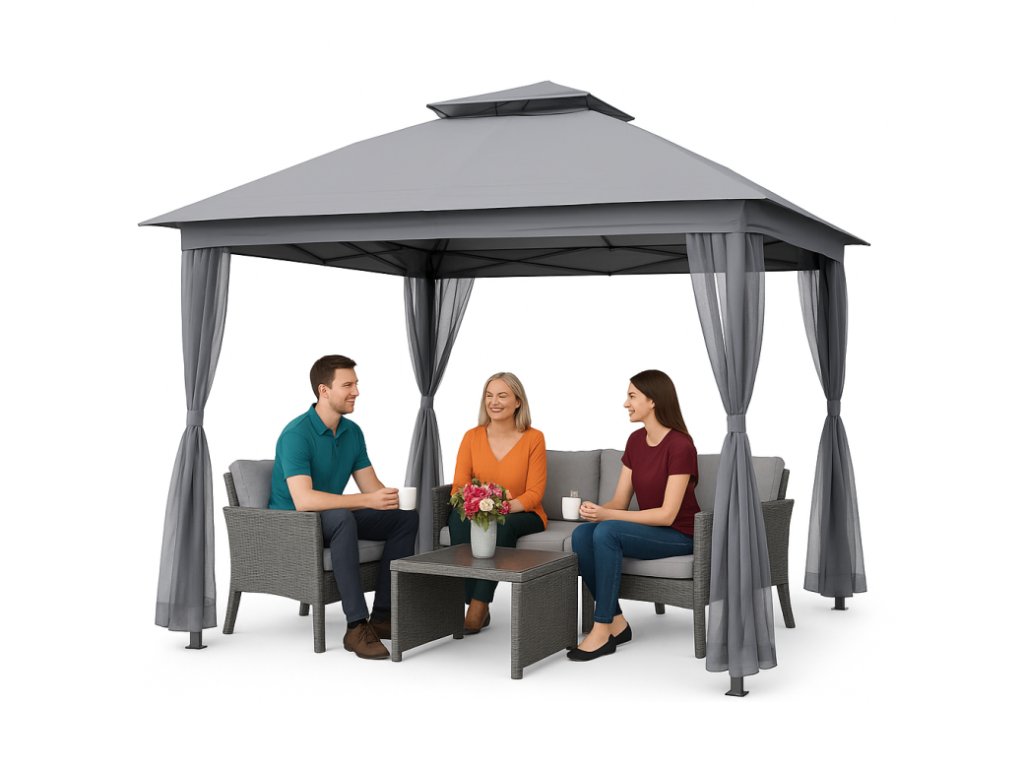 Tento zahradní pavilon je ideální volbou pro každého, kdo hledá kombinaci funkčnosti, estetiky a snadné manipulace. Vytvořte si příjemné a chráněné místo pro relaxaci i společenské události.