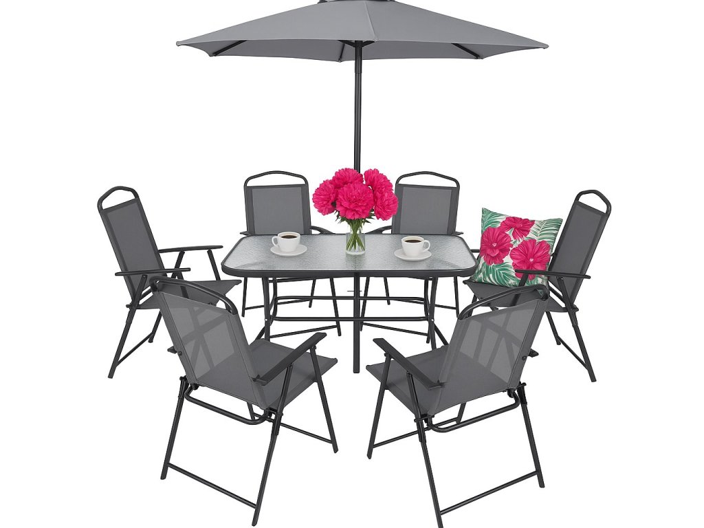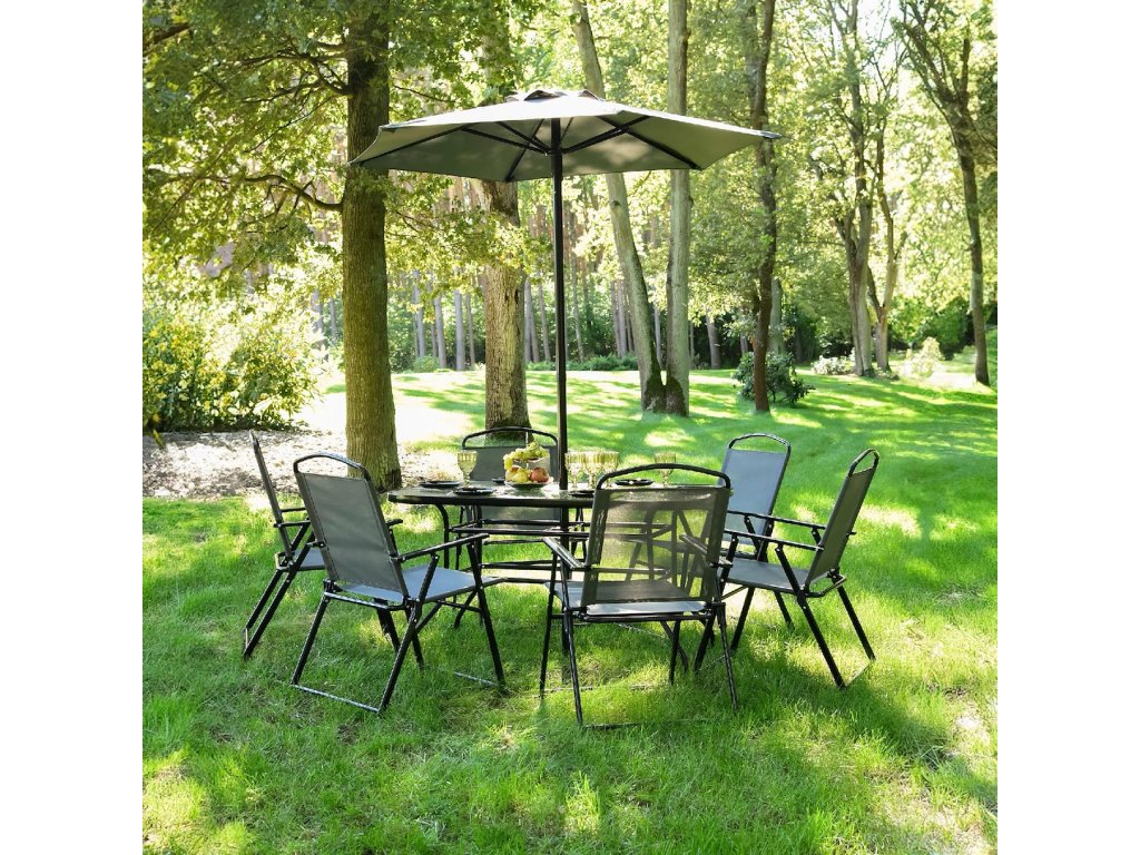 Zahradní sestava – stůl 130 cm, 6 skládacích židlí a slunečník 180 cm - grafitový