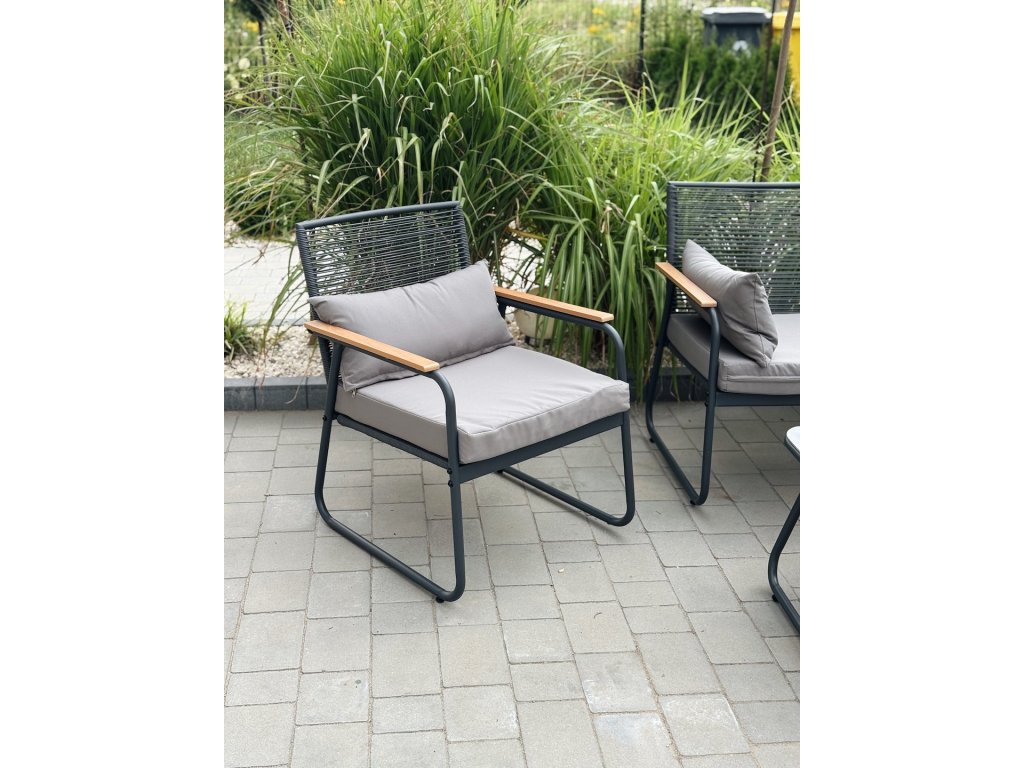 Zahradní set Stylo SD-52982 – 2 křesla, pohovka a stolek, ocelová konstrukce, kulatý wicker - černá/šedá