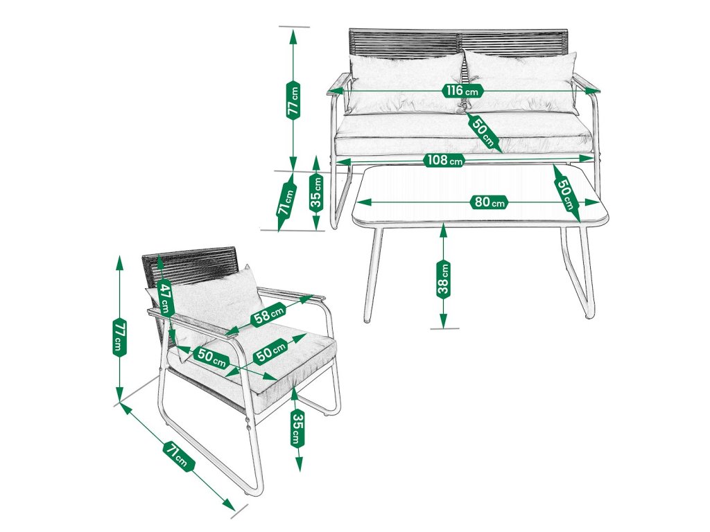 ✔ Kompletní zahradní sestava – pohovka, 2 křesla a stolek v jednotném designu