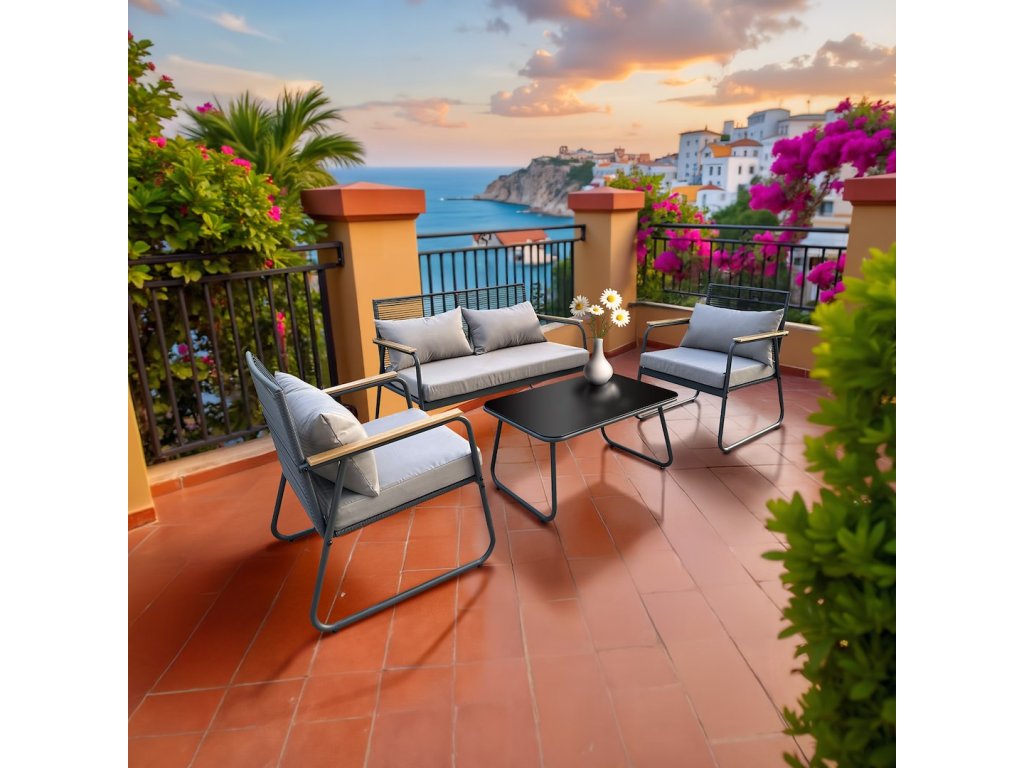 Vneste do svého zahradního posezení, terasy nebo balkonu eleganci a maximální pohodlí s tímto moderním zahradním setem z oceli a umělého wickeru. Sestava se skládá ze dvou pohodlných křesel, prostorné pohovky a praktického konferenčního stolku a je ideální pro letní relax i posezení s rodinou a přáteli.