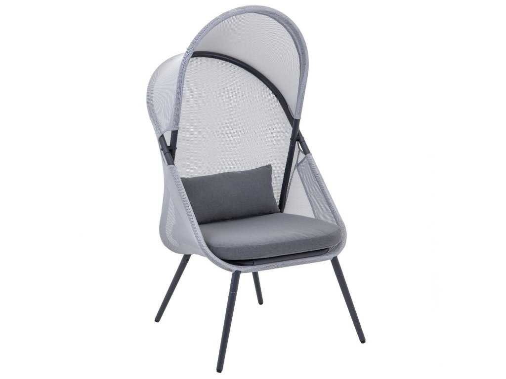 Zahradní skládací křeslo s baldachýnem – ocelové, černé / šedé