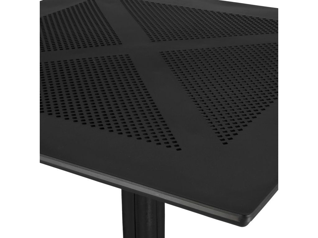Deska stolu má moderní perforovaný design, který nejen dobře vypadá, ale také efektivně odvádí vodu po dešti. Konstrukce je lehká, ale stabilní – stůl unese až 75 kg, takže bez problémů poslouží pro kávu, dekorace, květiny i větší servírovací tác.