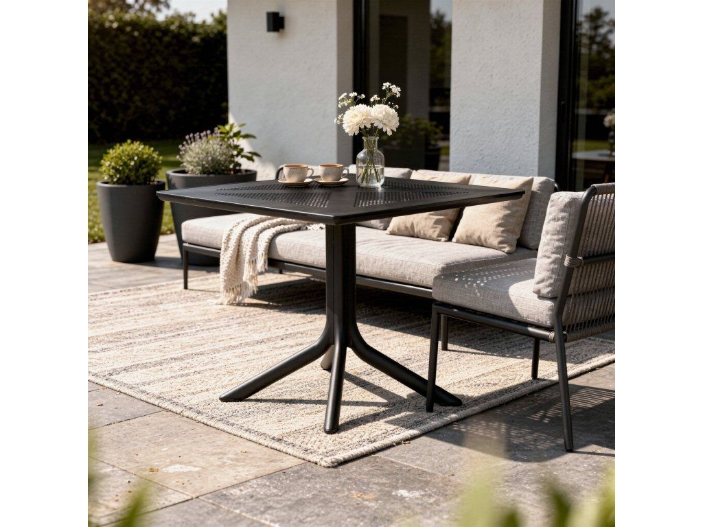 Praktický a moderní zahradní stůl, ideální na balkon, terasu i do zahrady. Vyniká nízkou hmotností, vysokou odolností vůči počasí a elegantním designem, který se hodí do každého venkovního prostoru.