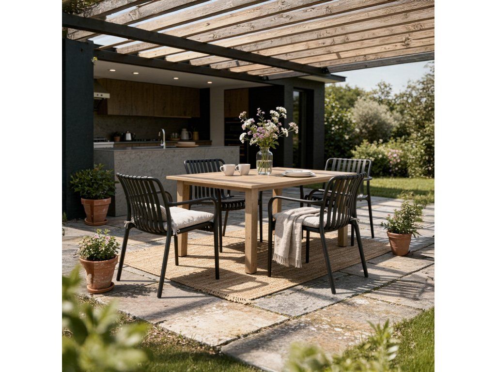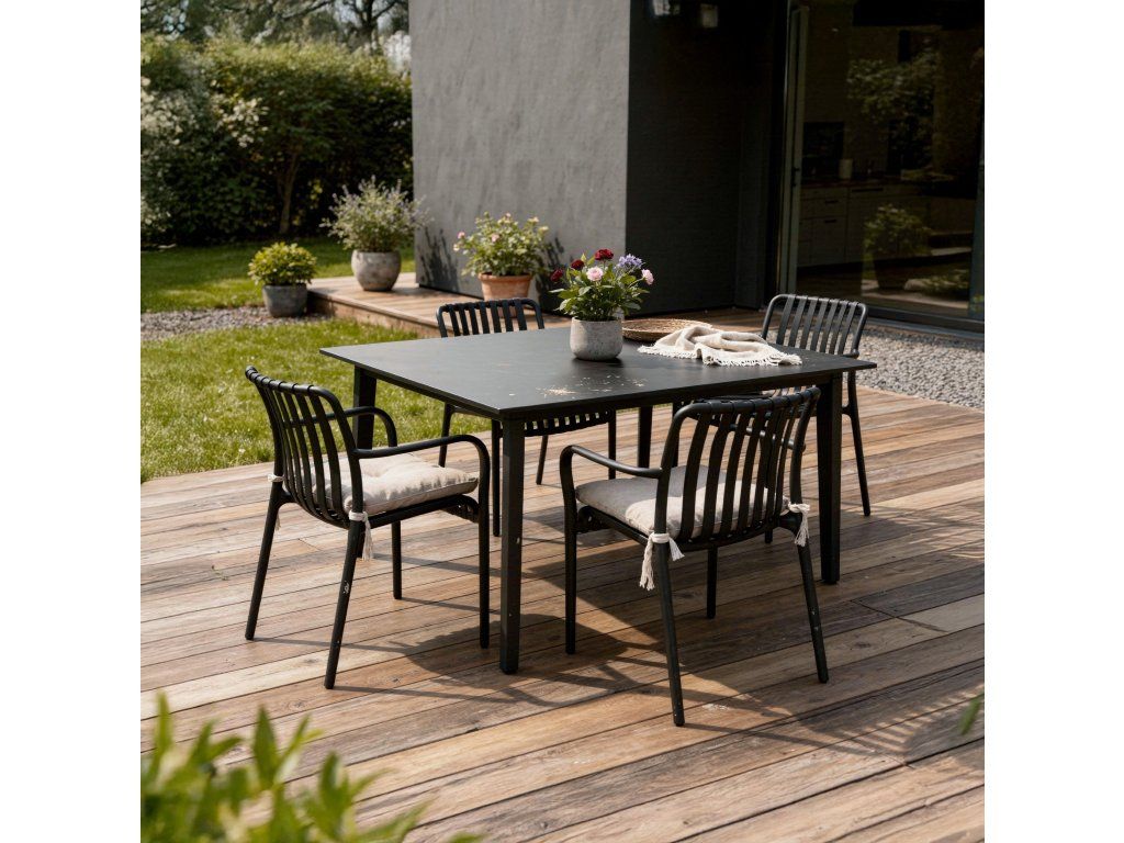 Nohy jsou vybaveny gumovými podložkami, které zvyšují stabilitu a zároveň chrání podlahu před poškrábáním – ideální pro balkony s dlažbou nebo terasy z kompozitních desek. Jednodílná a pevná konstrukce, pohodlné područky a snadná údržba dělají z této židle skvělou volbu pro každodenní odpočinek.