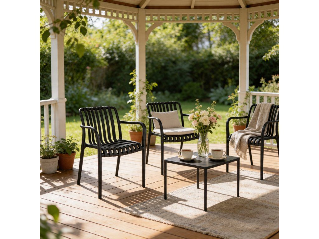 ✨ Zahradní židle RAIAS plastová s UV ochranou – černá