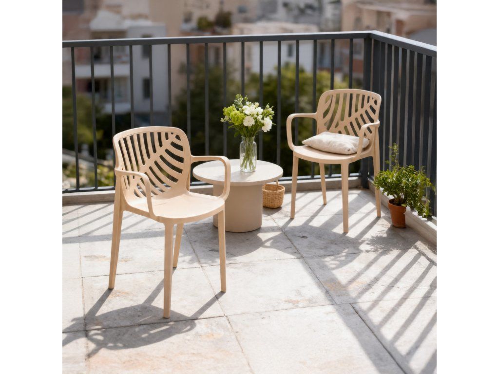 Zahradní židle TEREV kombinuje odolný plast vysoké kvality s moderním designem inspirovaným motivem listů. Je lehká, ale zároveň stabilní, odolná vůči venkovním podmínkám a nevyžaduje žádnou údržbu.