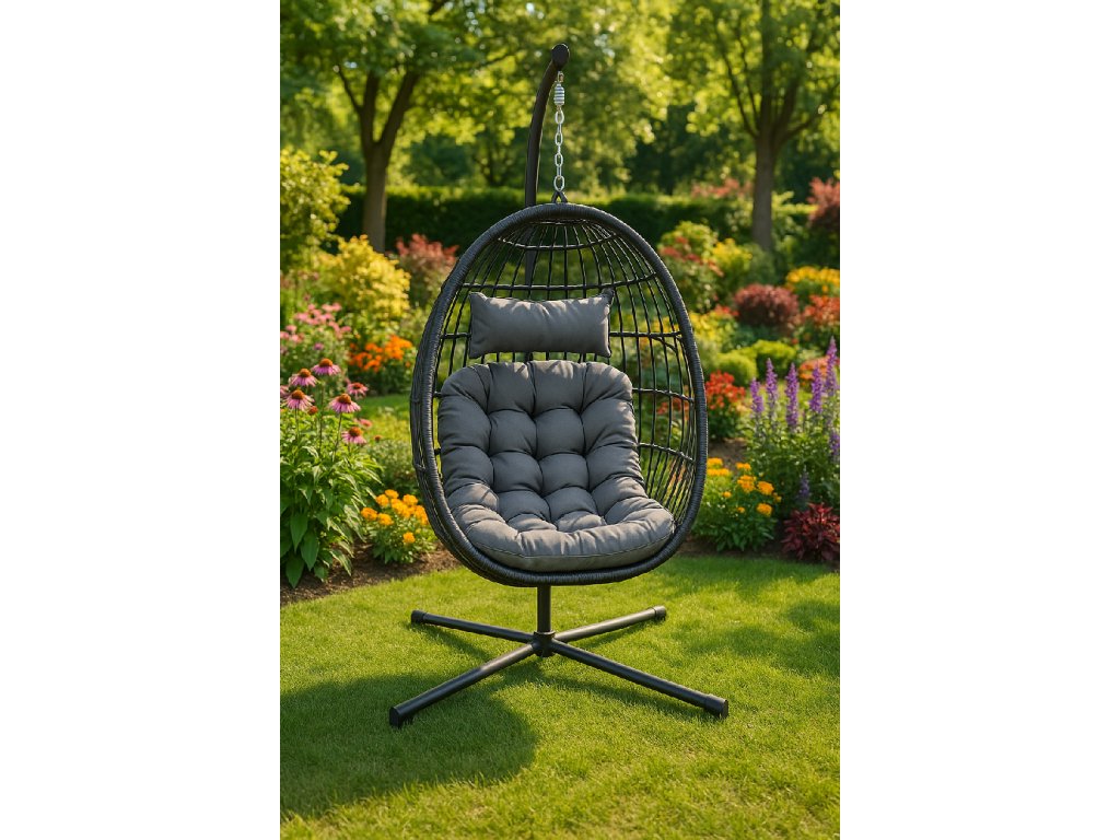 Užijte si chvíle odpočinku venku s tímto pohodlným závěsným křeslem – ideální na zahradu, balkon nebo terasu. Díky skládací konstrukci ho snadno uskladníte a ušetříte místo.